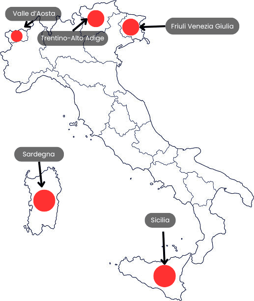 Tra le venti regioni italiane complessive, cinque sono definite dalla Costituzione "regioni a statuto speciale":