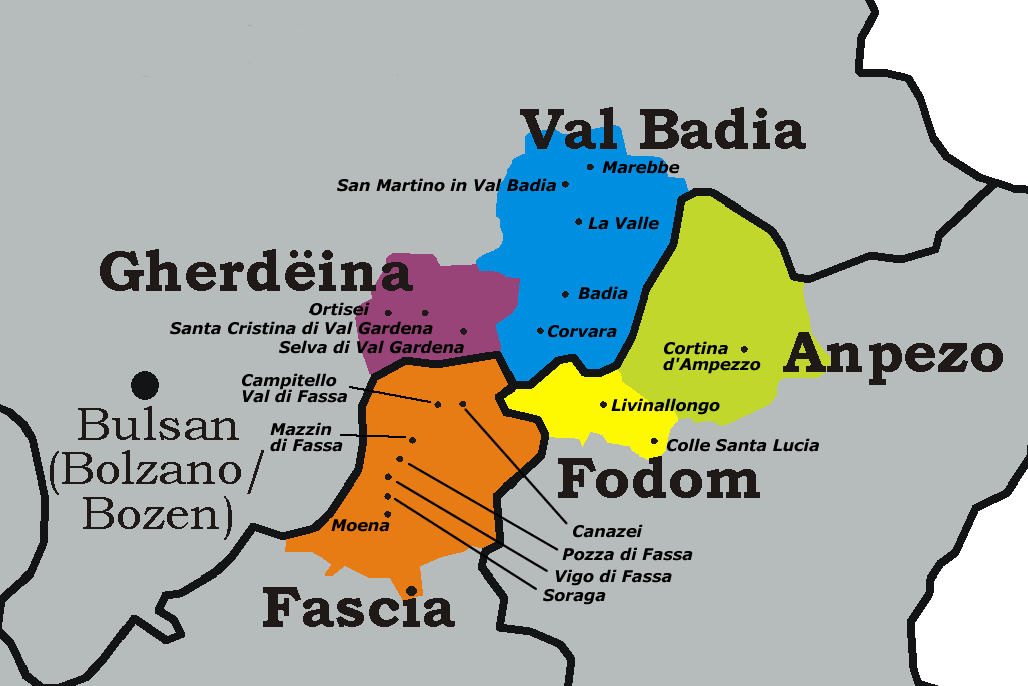 Attualmente il ladino è parlato ufficialmente in 51 comuni tra Veneto e Trentino-Alto Adige con numerose varianti locali. Il ladino viene insegnato nelle scuole della regione insieme all'italiano e viene mantenuto vivo attraverso molti eventi, iniziative e mezzi di comunicazione come televisioni locali, stazioni radio e giornali.